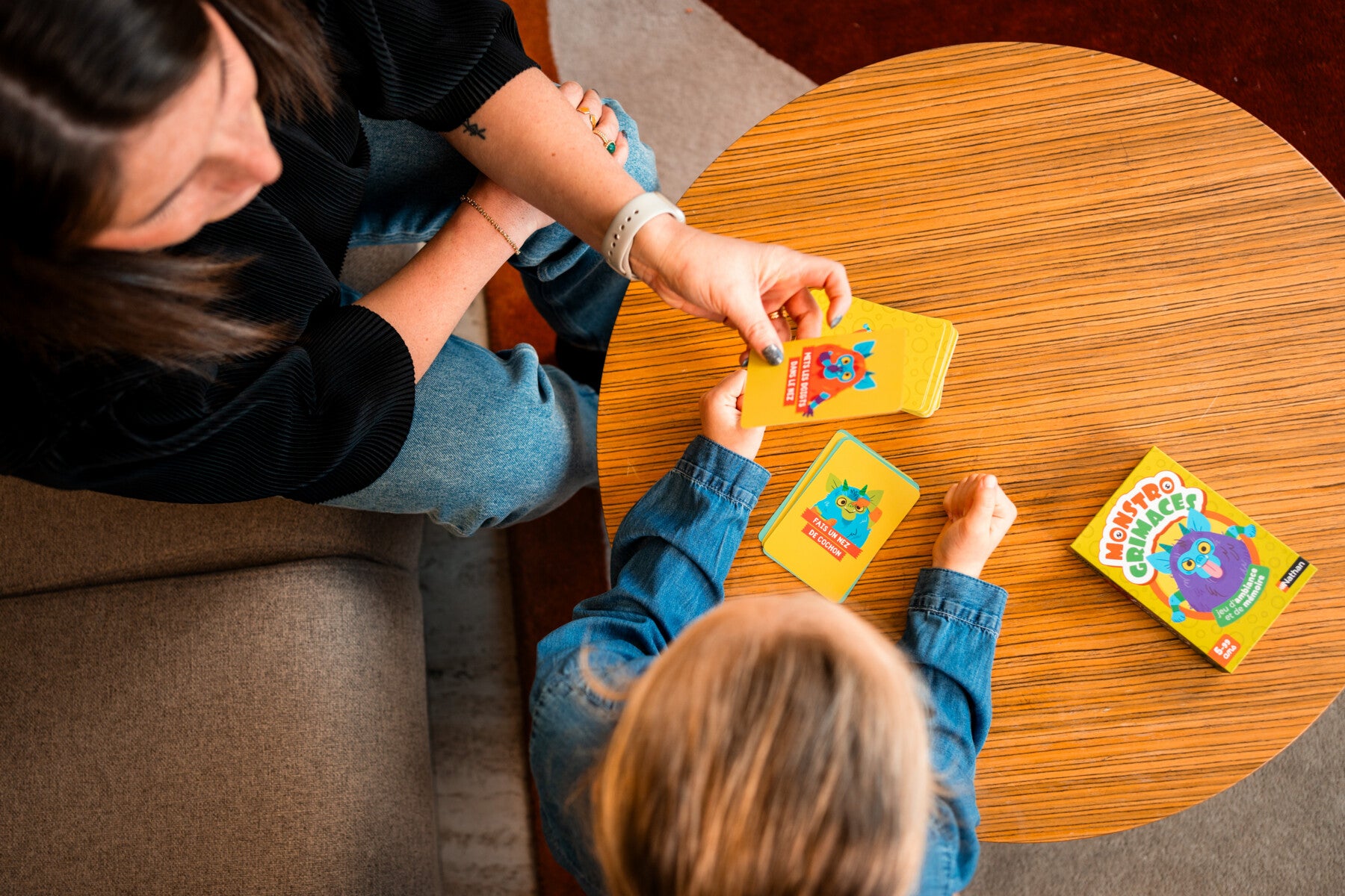 DECOUVREZ MONSTRO-GRIMACES ! Quels farceurs, ces monstres qui font des grimaces et qui touchent à tout ! Le gagnant est celui qui enchaîne, dans l’ordre, les grimaces et nomme les objets qu’ils ont touchés sans se tromper.
