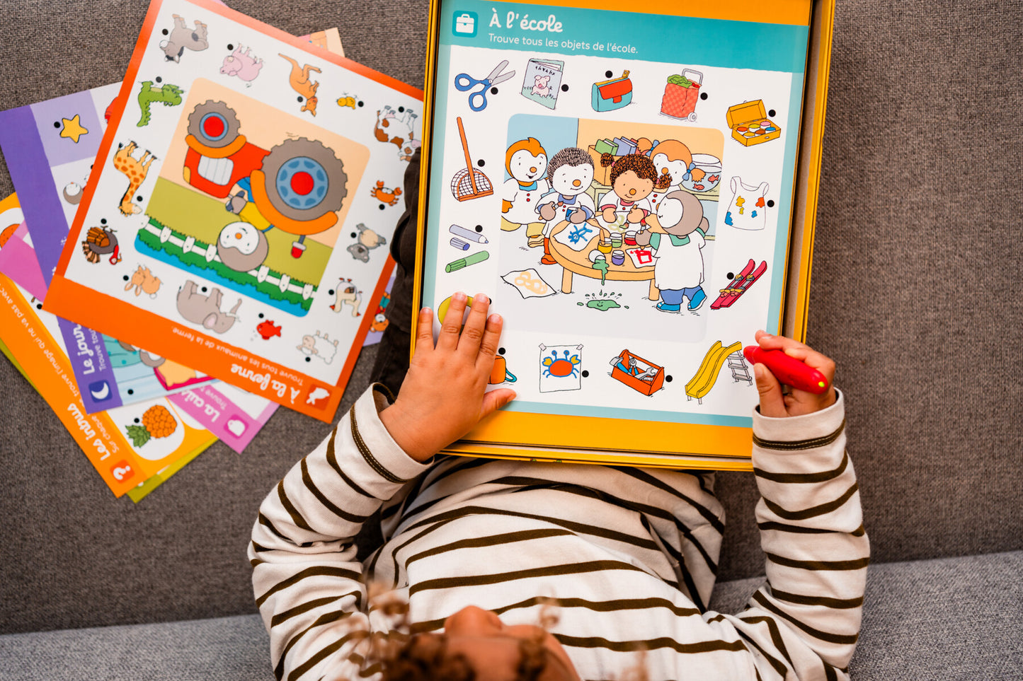 Un jeu qui permet de travailler et développer le vocabulaire de l'enfant autour de thèmes qu'il va retrouver tous les jours