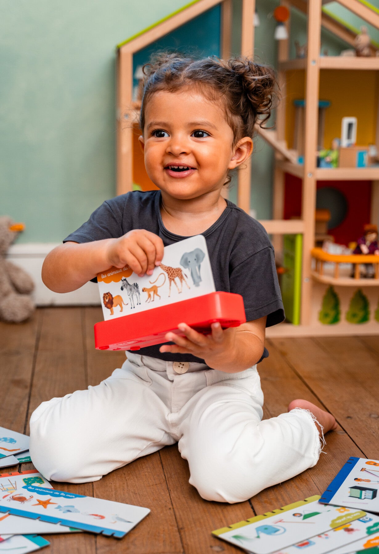50 thèmes tels que les objets du quotidien, les animaux, les instruments pour faire apprendre un maximum d’éléments de tous les jours.
