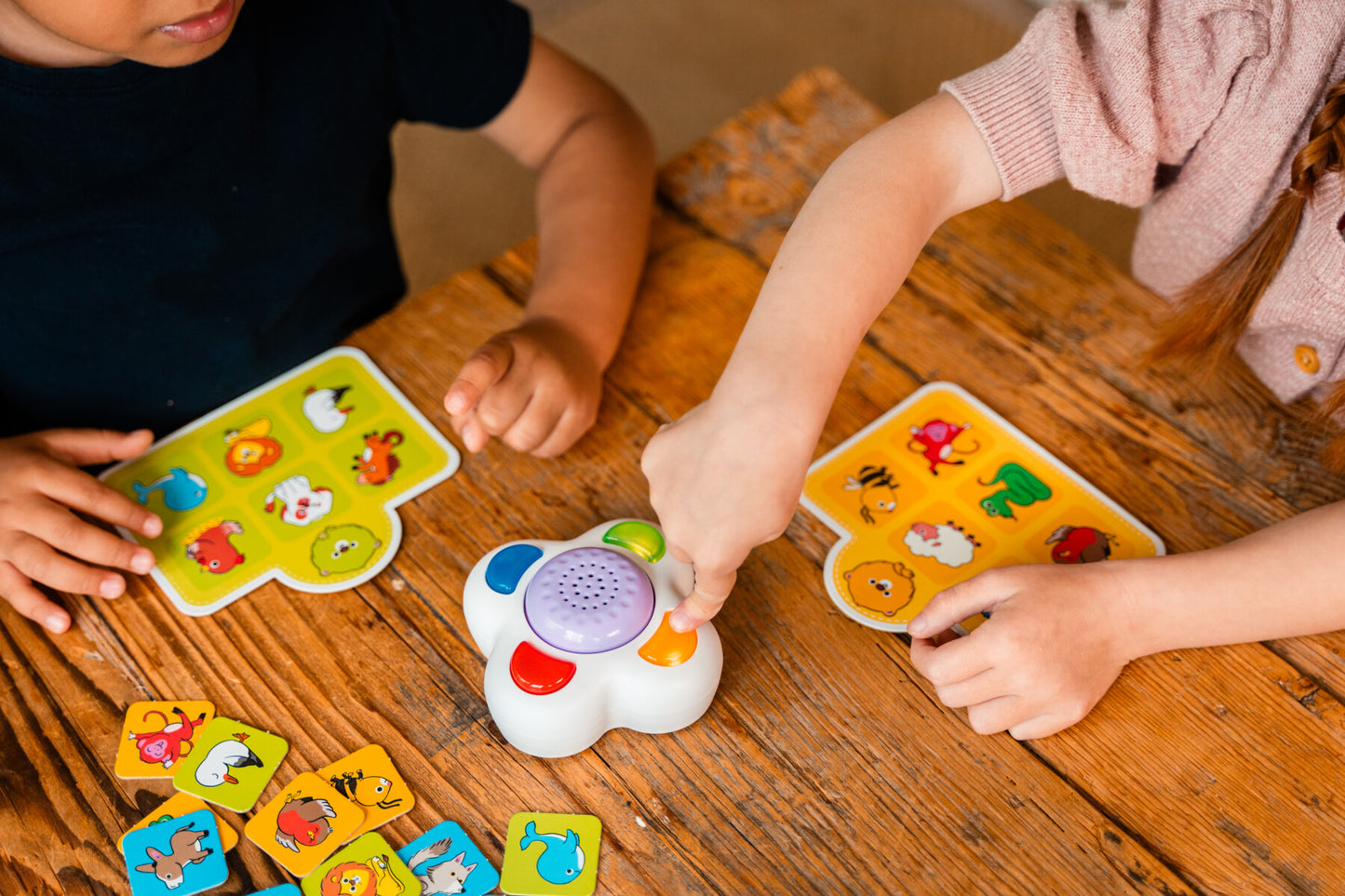 IDÉAL POUR DÉVELOPPER LA CONCENTRATION des plus petits. Il faut être attentif pour bien écouter le son et reconnaître l'animal qui lui correspond. Un jeu pour apprendre à respecter les premières règles (écoute, attendre son tour, apprendre à perde...). Impossible de tricher, c'est le boitier qui annonce le nom du gagnant !