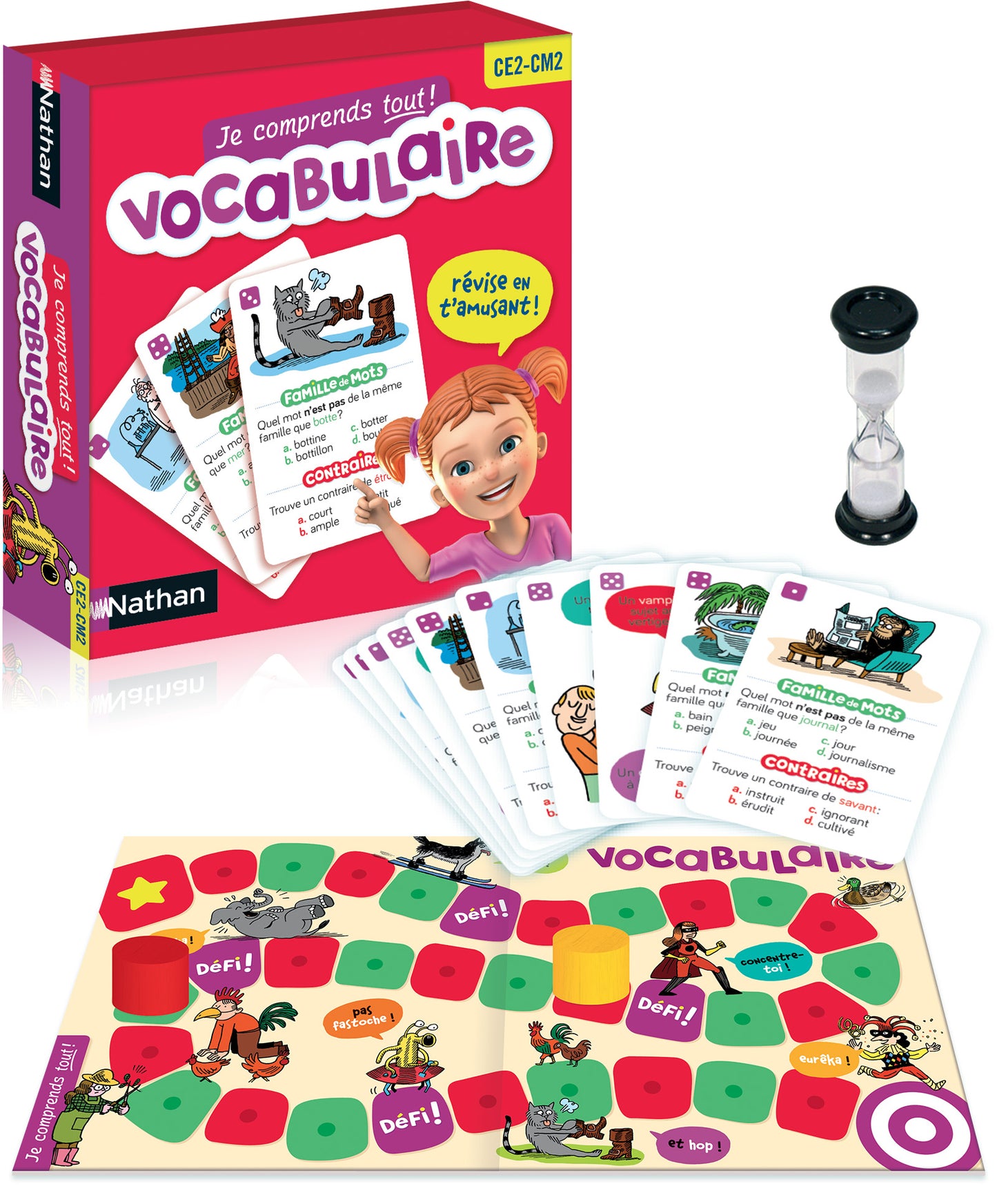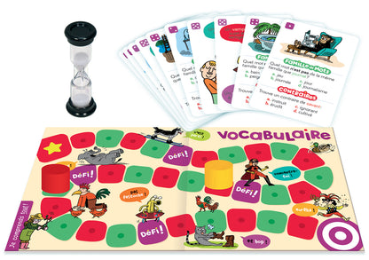 Un jeu pour apprendre le vocabulaire de manière simple et amusante. Avec un plateau et deux pions en bois. 2 joueurs. Plusieurs défis rigolos avec 80 cartes.
